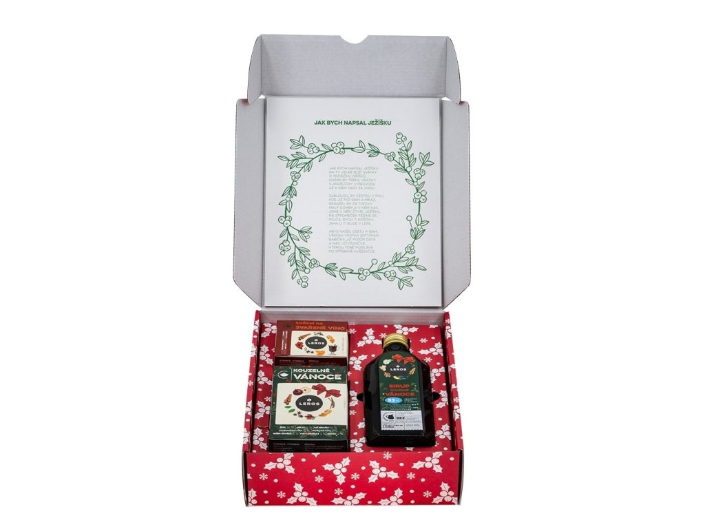 Leros Dárková sada Kouzelné Vánoce obsahuje čaj Leros Kouzelné Vánoce, Leros Koření na svařené víno a Leros Sirup Kouzelné Vánoce.