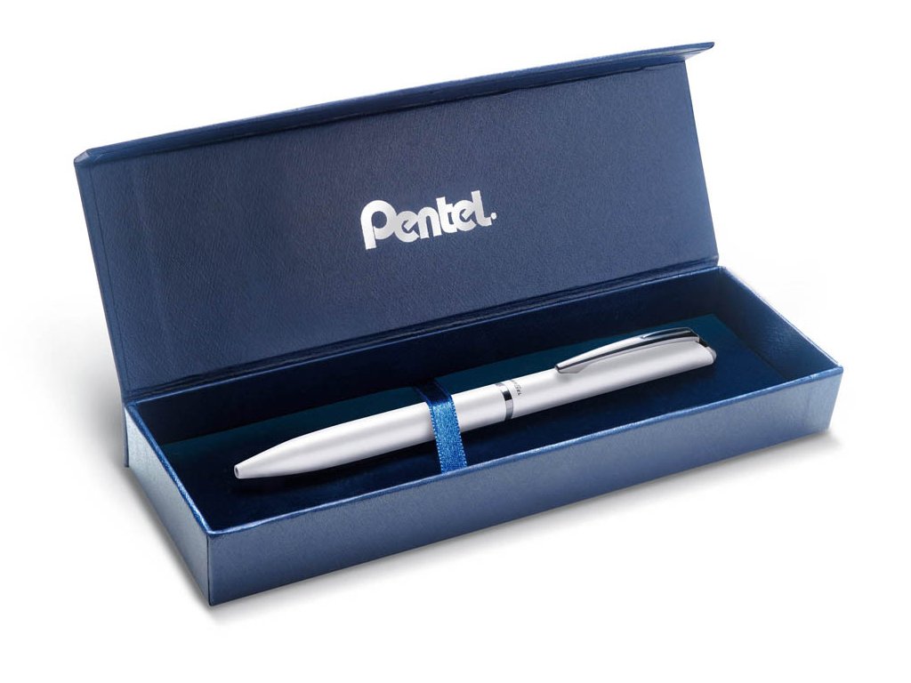 luxusní gelové pero v modrém provedení, rychleschnoucí gelová náplň EnerGel, černý inkoust, vyměnitelná náplň, otočný mechanismus, hladký příjemný úchop, tenké hladké celokovové tělo, stopa 0,5mm, dodáváno v dárkové krabičceDoplňkové parametry