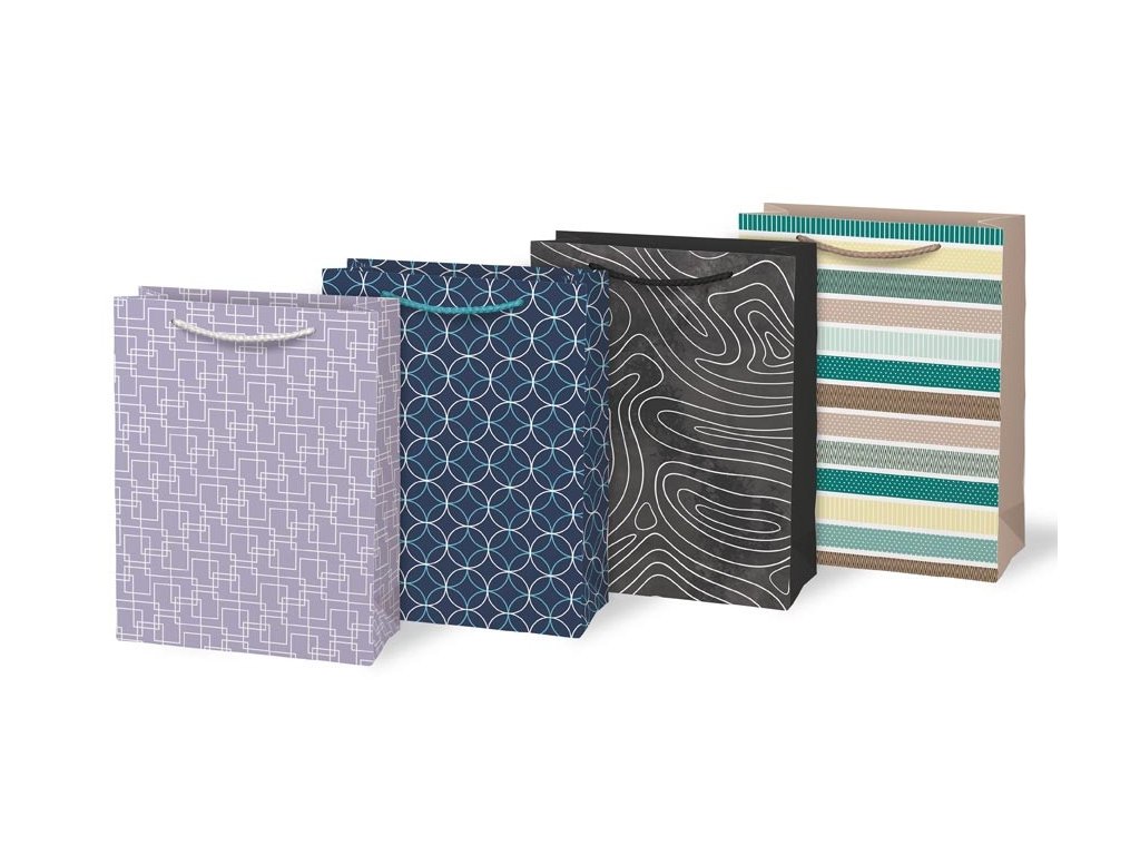 Taška dárková papírová - mix geometrické vzory / 19 x 25 x 9 cm