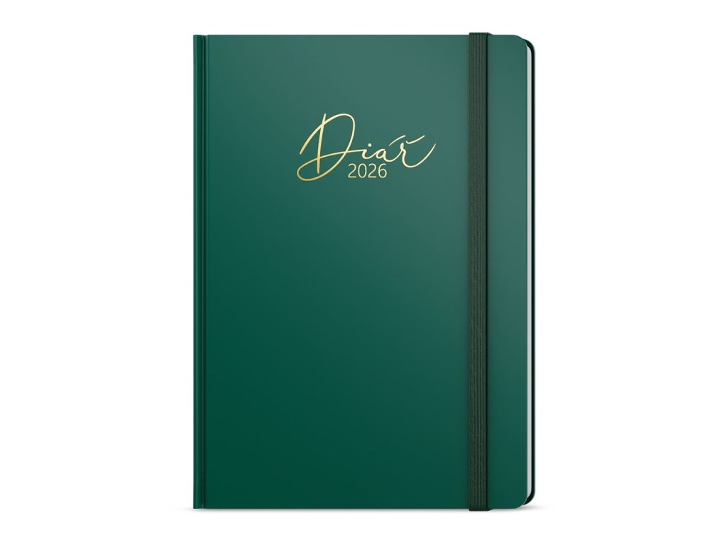 povrch diáře z matného nepoškrabatelného lamina se zlatou ražbou, rovný hřbet, zakulacené rohy, gumička v barvě diáře, , české a slovenské jmenné kalendárium, mezinárodní svátky, měsíční fáze, roční období, letní a zimní čas, místo na poznámky, formát 12 x 16,5 cmDoplňkové parametry