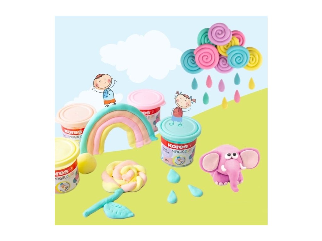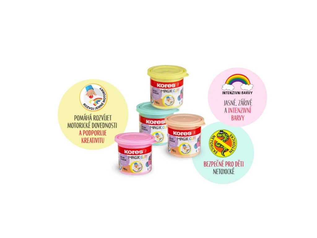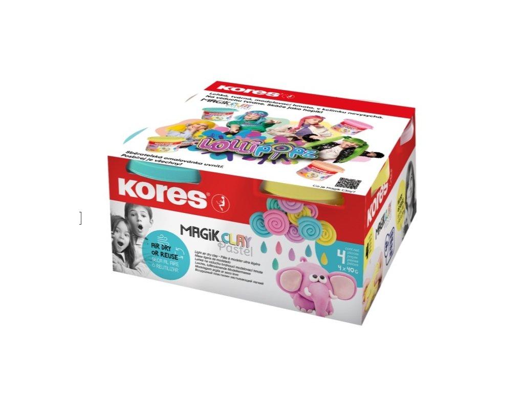 Modelovací hmota KORES MAGIK CLAY PASTEL LOLLIPOPZ - klasické barvy 4x40 g