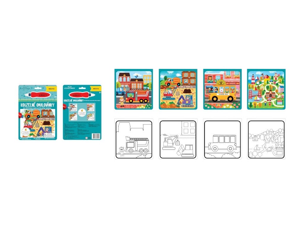 kouzelné omalovánky se štětcem naplnitelným vodou, 4 vystupující obrázky lze po uschnutí používat opakovaněDoplňkové parametry