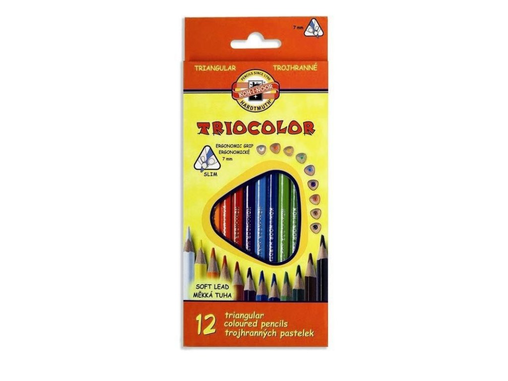 Slabé trojhranné pastelové tužky v dřevěném plášti. Ergonomický trojhranný tvar umožňuje optimální držení a vedení tužky. Jsou určeny jak pro školáky tak i děti předškolního věkuDoplňkové parametry