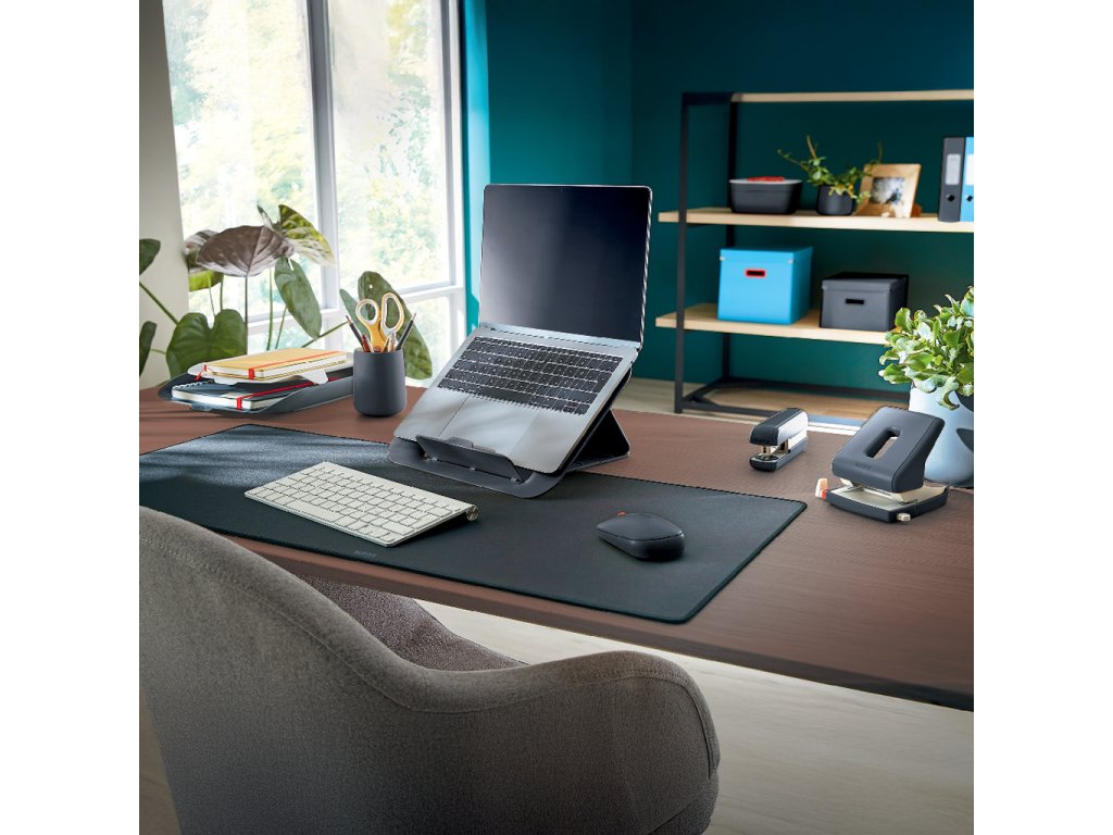 "Vytvořte si příjemný a funkční prostor s extra velkou herní podložkou pod myš Leitz. Jedná se o stylovou ochrannou podložku na stůl s pohodlným měkkým povrchem pro delší práci a hraní her. Jeho mimořádně velká plocha o rozměrech 100 x 40 cm poskytuje prostor pro klávesnici a myš, poznámkový blok a příslušenství. Povrch je kompatibilní se všemi laserovými a optickými myšmi. Podložka chrání desku stolu před poškrábáním, skvrnami, politím a odřením. Lze ji prát v pračce na 30 stupňů. Podložka je snadno přenosná, dodává se v malé, snadno zabalitelné kartonové krabici, obal neobsahuje plasty. CIŤTE SE DOBŘE při práci i zábavě s výrobky Leitz. Rozměr: 400 × 3 × 1000 mm.Doplňkové parametry