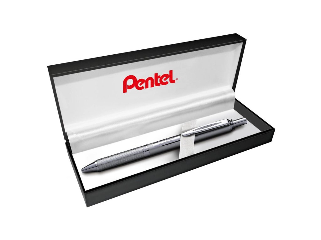 luxusní gelové pero s unikátní gelovou náplní EnerGel, mačkací mechanismus a lehce vroubkovaný úchop, který neklouže a zajišťuje pevné a příjemné držení, odolný niklový hrot a kvalitní celokovové tělo, módní design s lesklými kovovými doplňky, černá barva inkoustu, široký výběr barev, vysoce výkonný rychleschnoucí inkoustová technologie, která se nemaže, neteče a je vhodná pro leváky, šířka hrotu 0,7mm, stopa 0,5mm, baleno v elegantní dárkové krabičce, vyměnitelná náplň LR7Doplňkové parametry