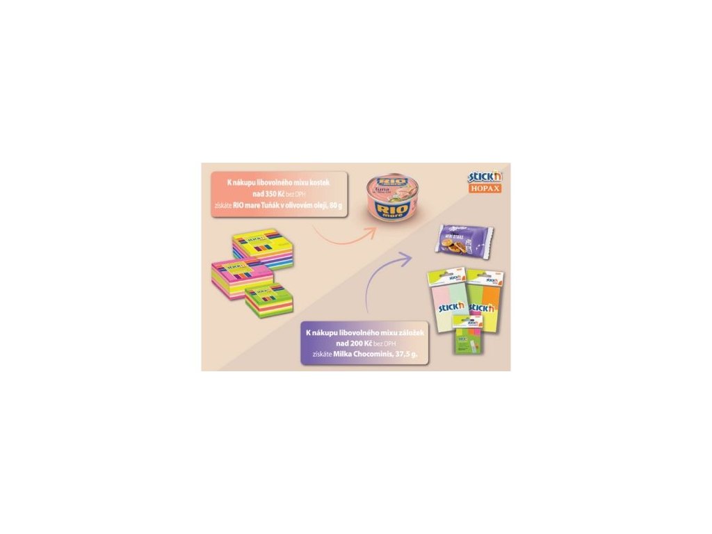 pastelové a neonové papírové samolepicí záložky, nově s vylepšenou lepivostí, vždy ve čtyřech barevných kombinacíchDoplňkové parametry