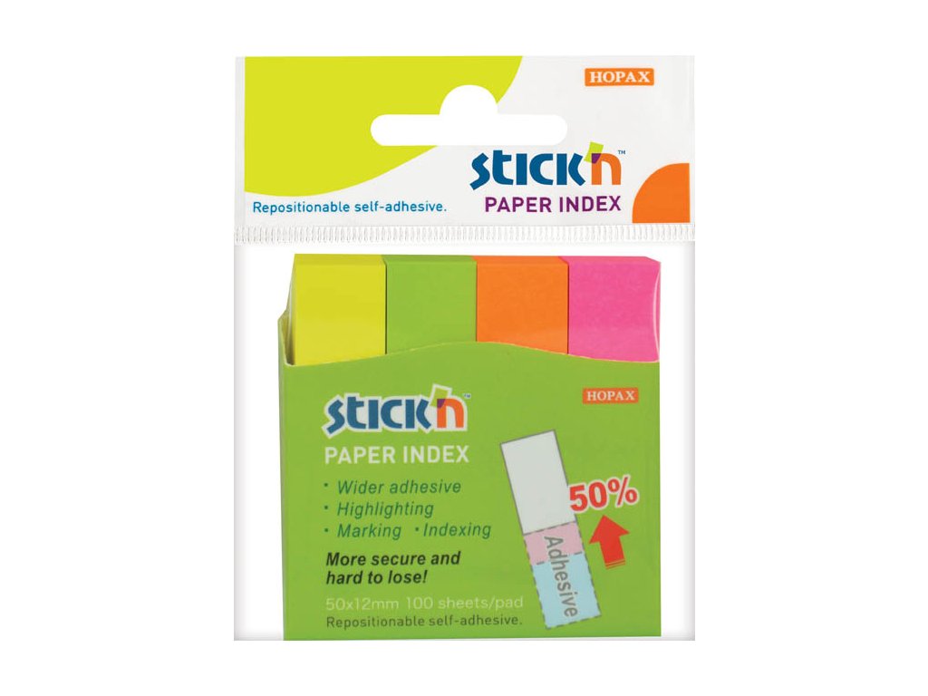 Samolepicí záložky Stick´n by Hopax - 12 x 50 mm / 4 x 100 lístků / neonové barvy