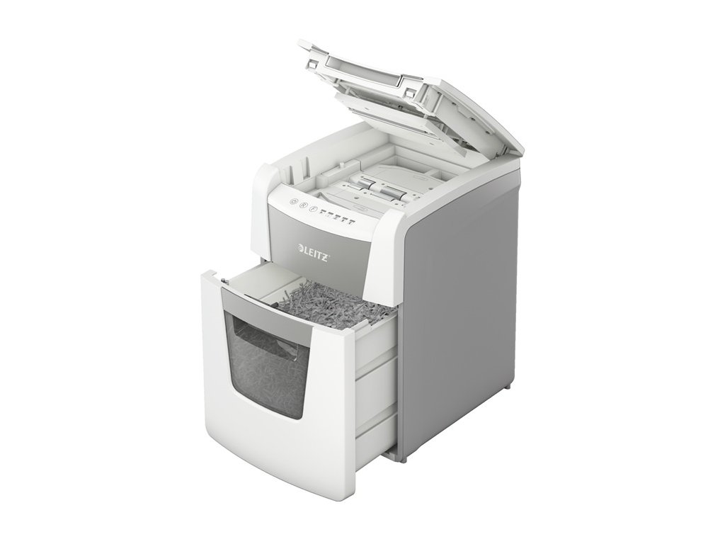 funkce automatického podávání pro 100 listů A4 (80 g/m2) otvor pro manuální plnění až po 6 listech vyprazdňovací funkce infračervený senzor plného koše a výstraha při 80 % naplnění ultra tichý provoz technologie proti zaseknutí papíru pro nepřetržité skartování nepřetržitý chod po dobu 20 minut ECO režim spánku se aktivuje po 3 minutách nečinnosti bezpečnostní mikro řez DIN P5 (2 x 15 mm) 34 l vyjímatelný koš dotekové ovládání skartuje také kreditní karty, kancelářské sponky a drátky sešívaček záruka 2+1 rok (i na řezací mechanismus) max. šířka vstupu: 220 mmDoplňkové parametry