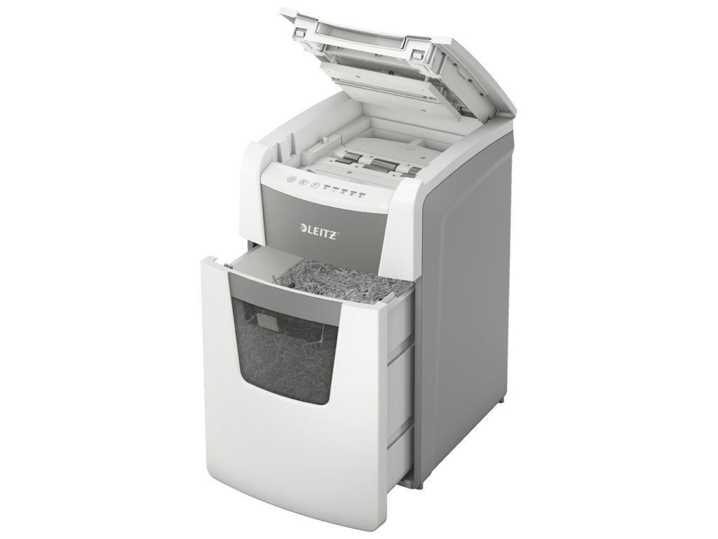 funkce automatického podávání pro 150 listů A4 (80 g/m2) otvor pro manuální plnění až po 8 listech vyprazdňovací funkce infračervený senzor plného koše a výstraha při 80 % naplnění ultra tichý provoz technologie proti zaseknutí papíru pro nepřetržité skartování nepřetržitý chod po dobu 30 minut ECO režim spánku se aktivuje po 3 minutách nečinnosti bezpečnostní křížový řez DIN P4 (4 x 28 mm) 44 l vyjímatelný koš dotekové ovládání skartuje také kreditní karty, kancelářské sponky a drátky sešívaček záruka 2+1 rok (i na řezací mechanismus) max. šířka vstupu: 220 mm rozměry (š x v x h): 365 x 618 x 430 váha: 12 kgDoplňkové parametry