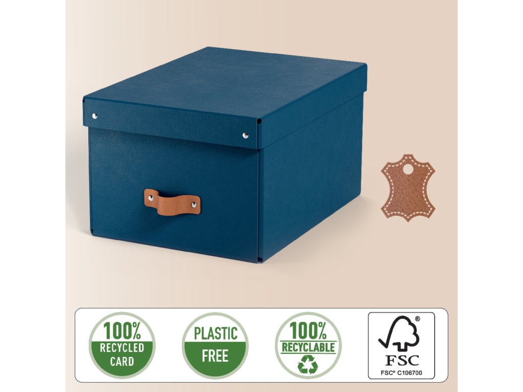 Sada dvou středně velkých kartonových krabic s víkem. 17L. Snadno sestavitelný úložný box na dokumenty A4 a další předměty. 100% recyklovaný karton. Rozměr: 270 × 200 × 370 mm.Doplňkové parametry